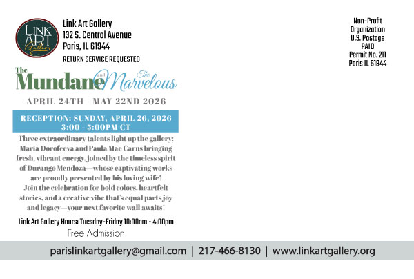 We would like to share a correction to our recent postcard mailing. The opening reception for The Mundane and the Marvelous will be held on Sunday, April 26th from 3:00 PM to 5:00 PM. We apologize for the error in the mailing and for any inconvenience this may have caused.