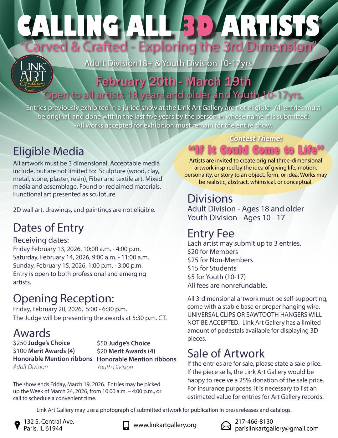 Calling all 3D Artists! This exhibition is for you! Here is your chance to showcase your vision, talent and uniqueness.